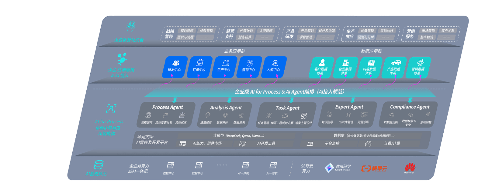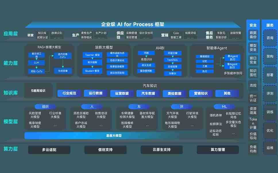 端到端的一站式AI工作空间深度融合了从企业战略规划到日常经营的全流程业务板块,,定向解决车企内部领域多、、、部门多、、、链条长、、、场景碎片化等难题,,,支持车企快速构建以AI为核心的生产力写作体系,,,,实现任务执行与AI能力的无缝集成与交互